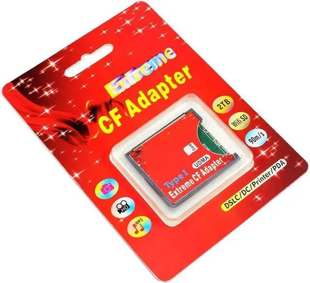 No Memory card in the package. Need CF type I slot. (Don't support CF-2) 3.3mm height CF card Support 16/32/64/128GB Standard SD card. SD SDHC SDXC to High-Speed Extreme Compact Flash CF Type I Adapter For 16/32/64/128 GB