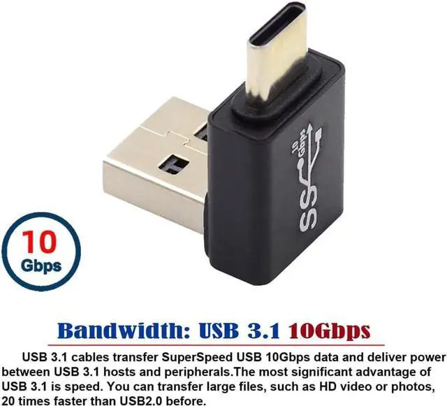 Down Angled USB3.0 Type A Male to USB 3.1 Type C Male Data 10Gbps Charge Adapter 90 Degree for Laptop Phone
