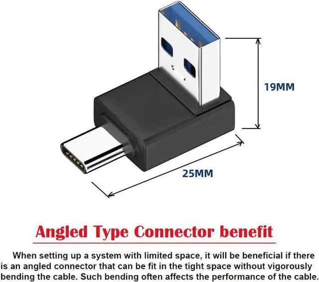 The angled type Allowing you to connect it to a female port, even if space around the port is limited.