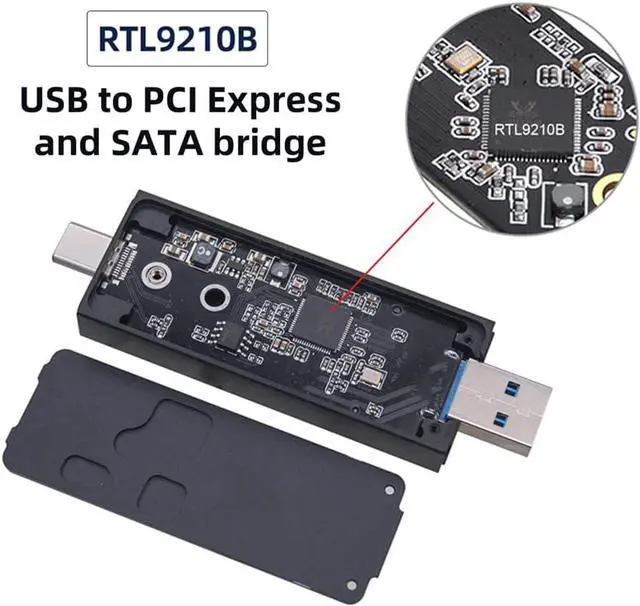 The RTL9210B chipset is a USB bridge that combines a USB device with both a PCIe controller and a SATA controller. Via the PEDET interface of M.2 mechanical, it can auto switch USB-to-PCIe mode, or USB-to-SATA mode.