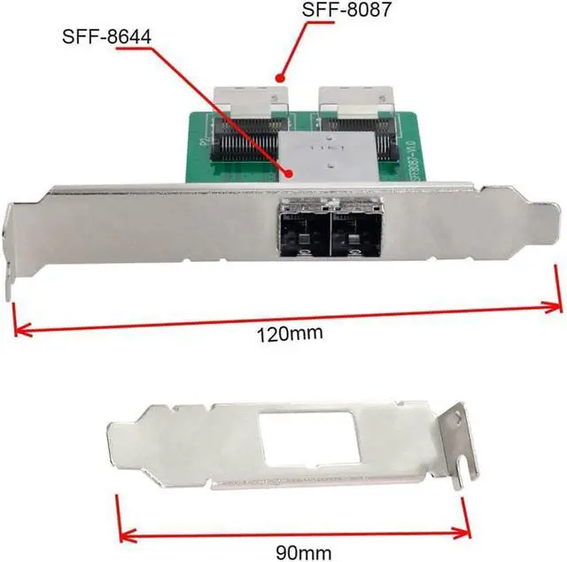 2-Ports SFF-8087 to SFF-8644 Adapter with Full PCIe Slot Profile Mounting Bracket;
