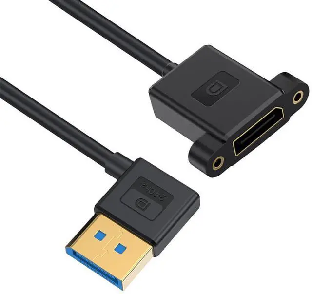 Angled Connector: The angled type Allowing you to connect it to a female port, even if space around the port is limited. Ultrafine Cable: The ultrafine and flexible high speed cable with 4.0mm diameter fits perfectly in tight spaces, designed for Desktop, Laptop , and Graphics applications where flexibility and compact cable routing is required.