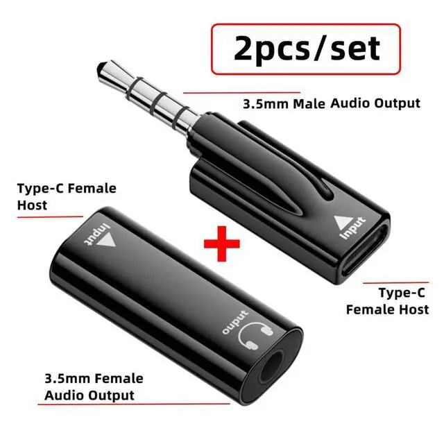 1) 2pcs adapter in the package. one piece Type-C Female to 3.5mm Female, and one piece Type-C Female to 3.5mm Male.