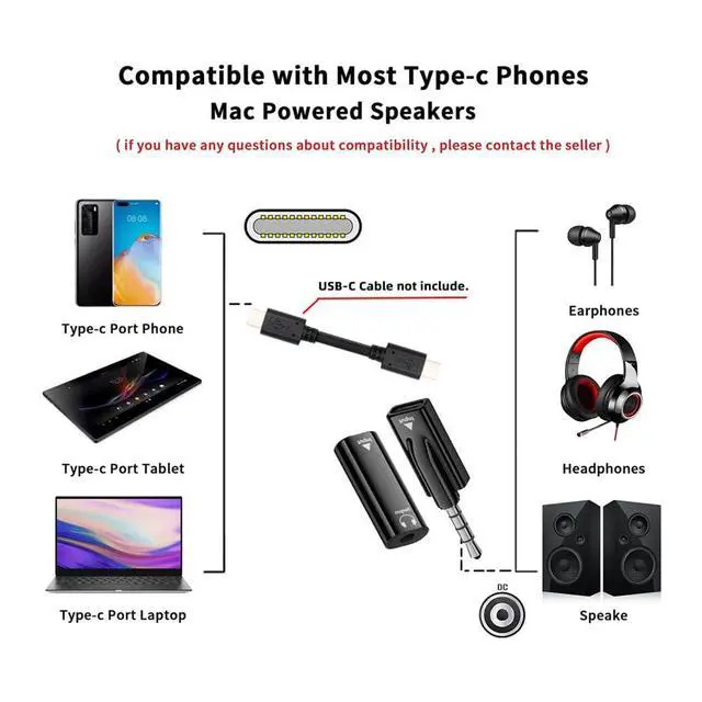 3) Powers via USB-C port, no additional power supply needed. Compatible for Windows MacOS,Android with USB-C interface. Support mobile phone computer use, support the use of single headset.No drivers necessary. Fully plug and play.Easy carrying,and more flexiable.