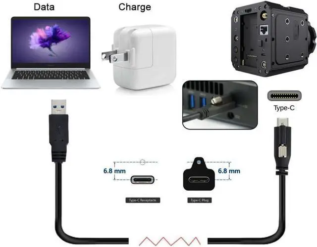 The Type-C USB Locking Cables are USB-C Vision Standard compliant and tested to be fully compatible with industrial USB 3.0 Machine Vision cameras.