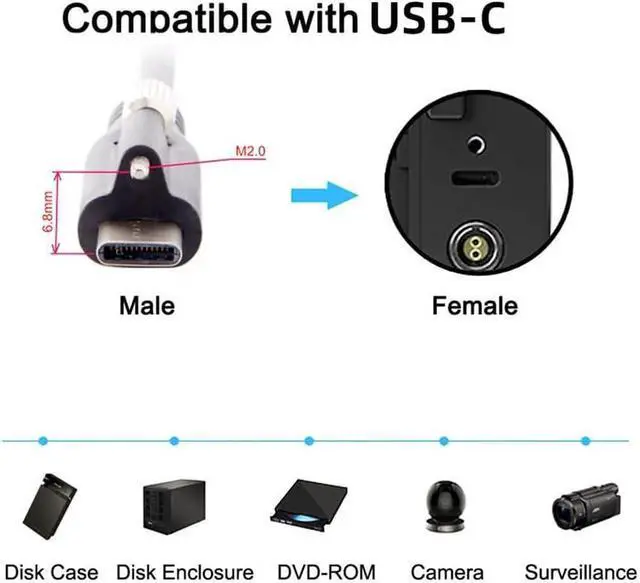 USB 3.1 Type-C Locking Connector to Standard USB3.0 Data Cable for Camera With Panel Mount Screw.