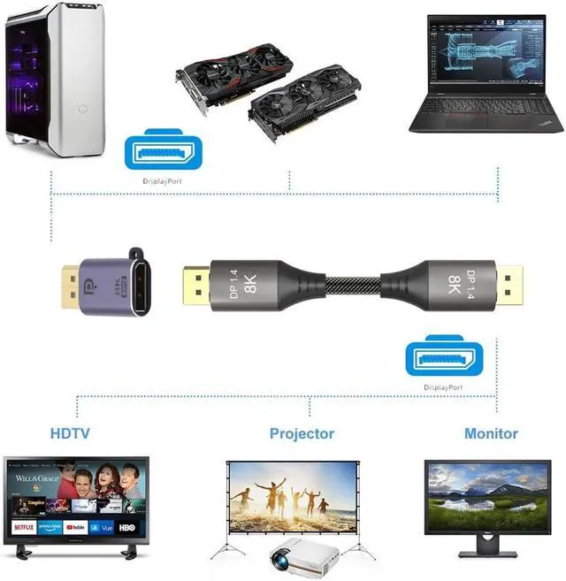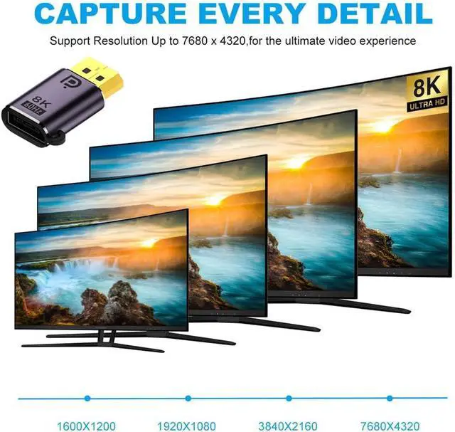 DisplayPort female adapter, DisplayPort 1.4 Male, support 8K high resolution 7680 * 4320