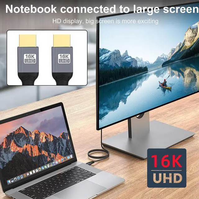 High Speed: allows for unrestricted video in 16K , 8K (UHD) 1440p (QHD) and 1080p (HD). Enjoy unparalleled videoquality, crisp and accurate sound, and buffer-free ethernet connection with these HDMI cables. 16K HDMI cable 2.2 supports 16K@60Hz with DSC, 10K@60Hz, 8K@120Hz, 4K@240/165/144Hz, 2K@240/165/120Hz.