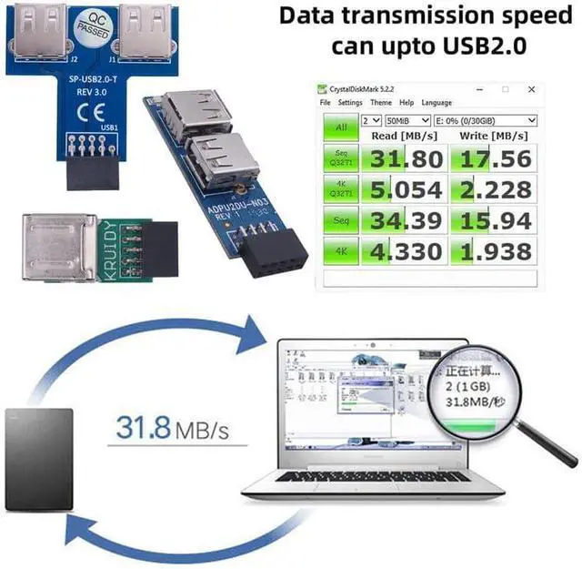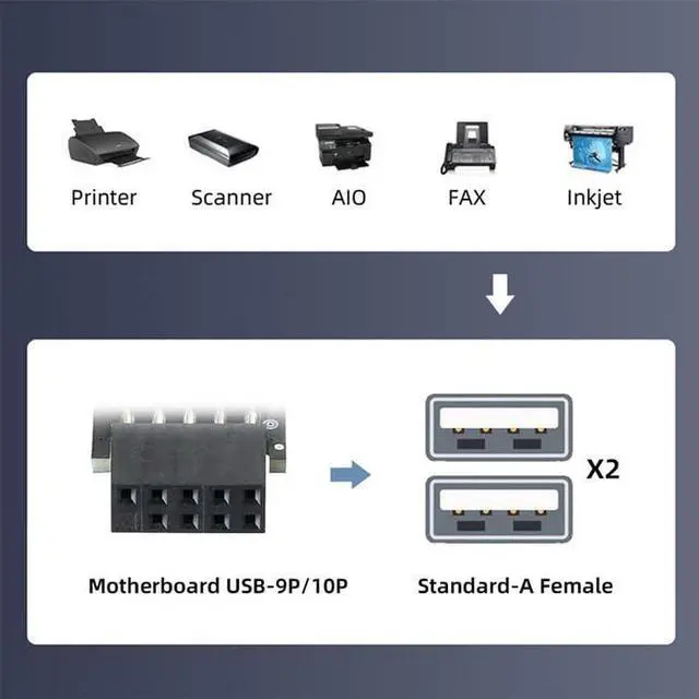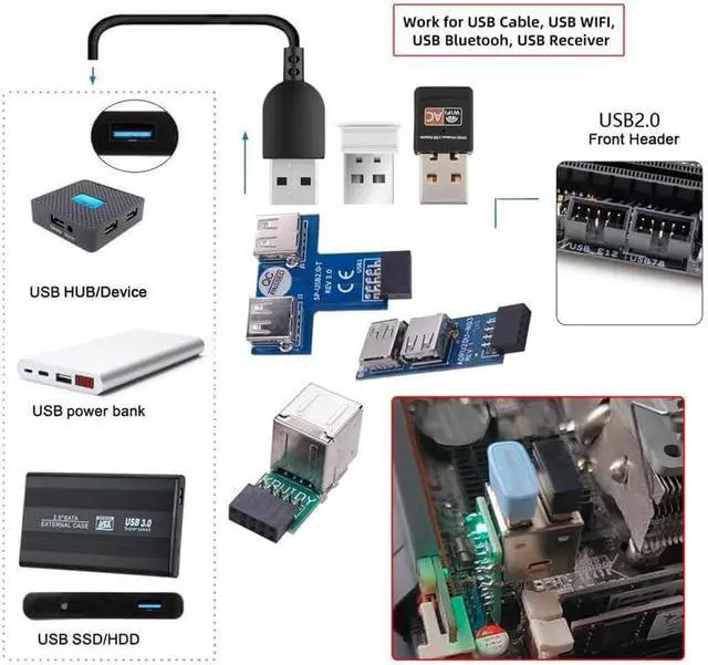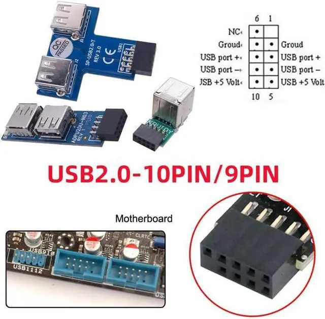 You can convert the 9pin motherboard internal port to usb 2.0 device. Used to connect USB cables or adapter in tight fit applications.