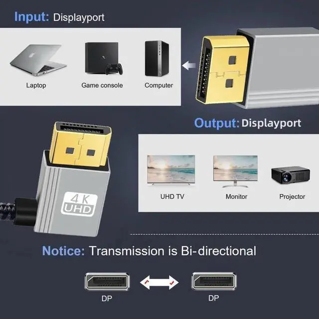 1) This Displayport cable is perfect for video streaming or gaming, allowing you to easily configure a 4K monitor for extended desktop or mirrored display.