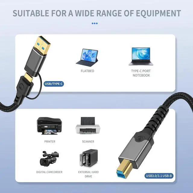 This cable is designed for devices with the USB 3.0 Type-B square port (typically blue with 9 pins):