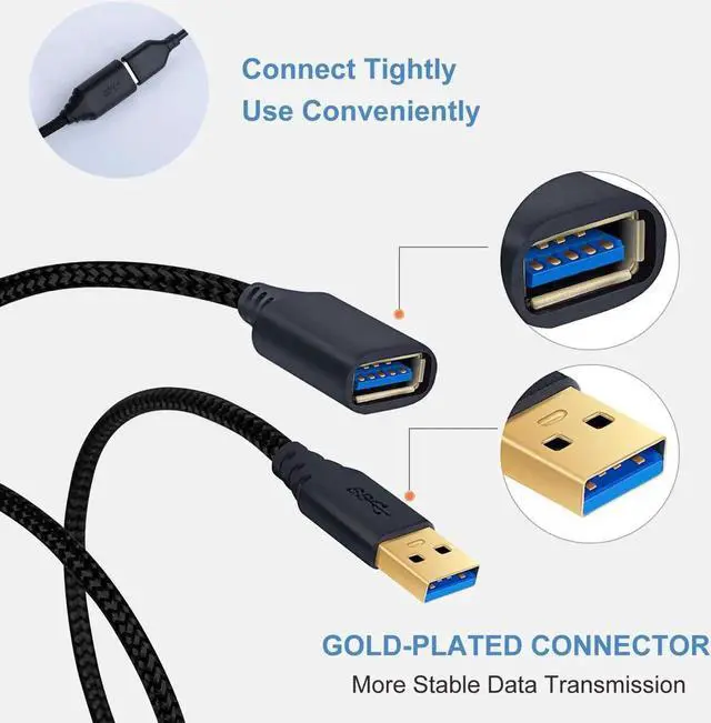 ![Alt view image 5 of 5 - [2 PACK, 6.6ft] USB Extension Cable, USB 3.0 Extension Cable, USB Type A Male to Female Extender Cord, Nylon Braided Extender Cable with Gold-Plated Connector for USB Flash Drive/Hard Drive/Printer](https://c1.neweggimages.com/productimage/nb640/C601S2604130IG8NMD8.jpg)