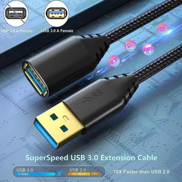 ![Alt view image 4 of 5 - [2 PACK, 6.6ft] USB Extension Cable, USB 3.0 Extension Cable, USB Type A Male to Female Extender Cord, Nylon Braided Extender Cable with Gold-Plated Connector for USB Flash Drive/Hard Drive/Printer](https://c1.neweggimages.com/productimage/nb640/C601S2604130IG9OPCA.jpg)