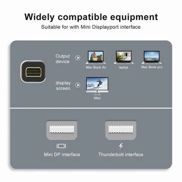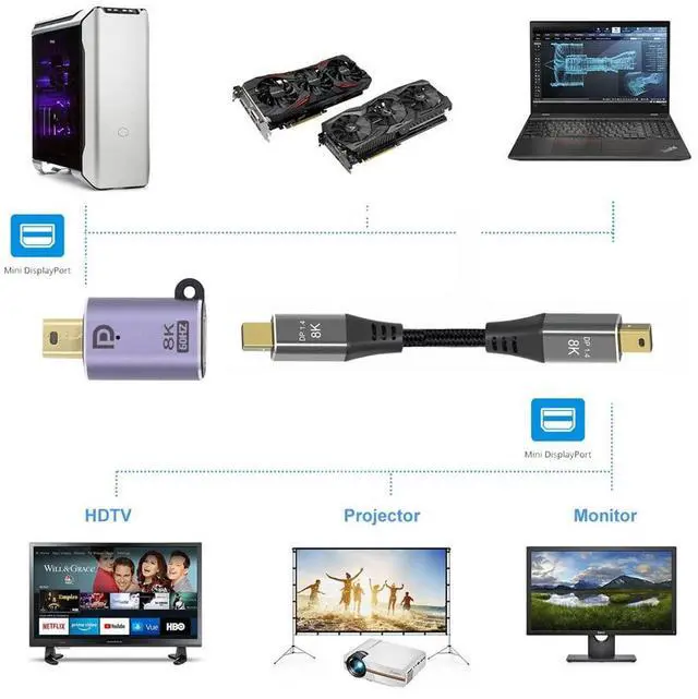 MiniDisplayPort male to female adapter, support 8K high resolution 7680 * 4320