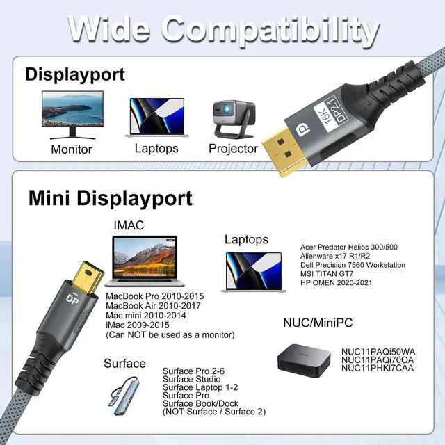 Experience the next generation of visual performance with this Mini DisplayPort to DisplayPort 2.1 Cable. Supporting 16K@60Hz, 8K@120Hz, and 4K@240Hz, this high-performance cable delivers stunning clarity and ultra-smooth motion for gaming, video editing, and professional workstations. With bi-directional functionality and flexible display modes, its the ultimate cable for modern laptops, graphics cards, and monitors.