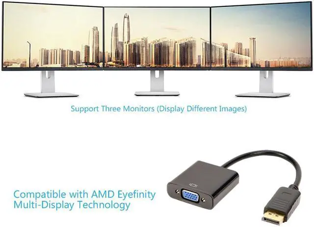 Active Conversion: Compatible with AMD Eyefinity Multi-Display Technology, this DP to VGA active adapter supports to hook up extended monitors to your computer for gaming or digital signage application.