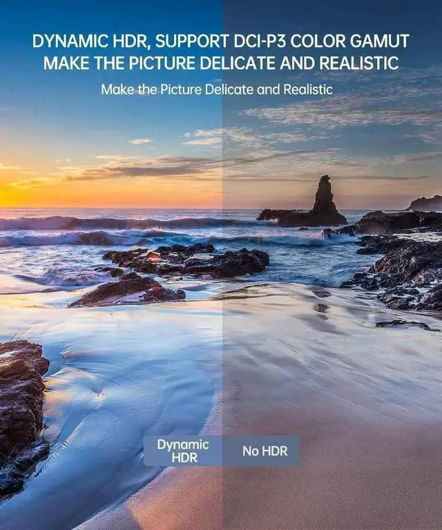 Supports 8K@60Hz, 5K@60Hz, 4K@144Hz, 4K@60Hz, 2K@240Hz, 2K@165Hz, 1080P@240Hz, and HDCP 2.2, HDCP 1.4, HDR.