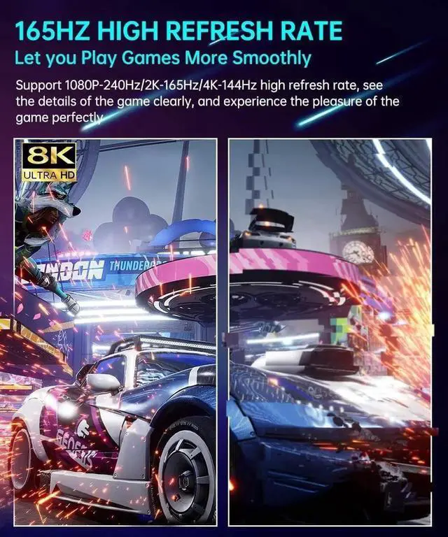 Version 1.4: 8K@60Hz, 4K@144Hz, 2K@165Hz. (Use Sony 8K device test, refresh rate is 8K/60Hz)