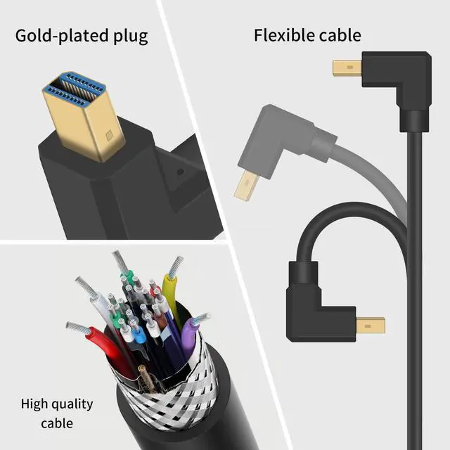 Our left angled mini displayport male to displayport female cable is the perfect solution to connect your PC or mini Displayport-equipped computer to a monitor, Plug and play, no software installation required.