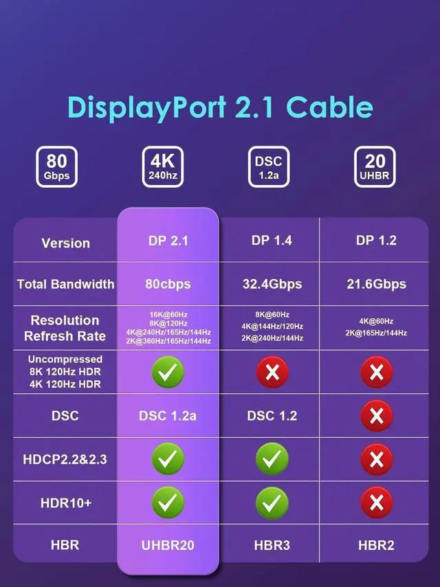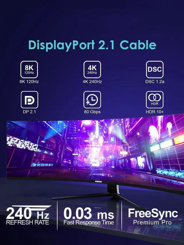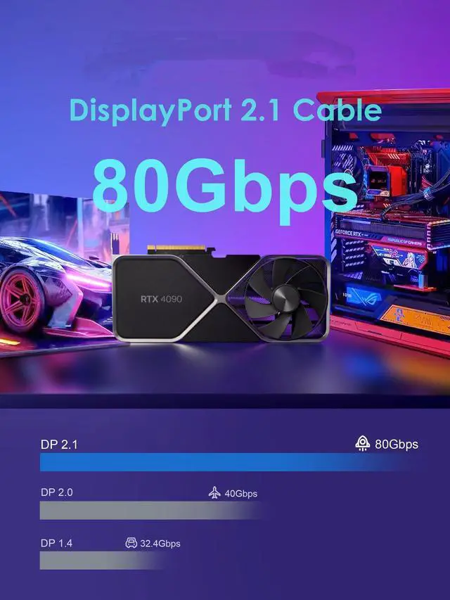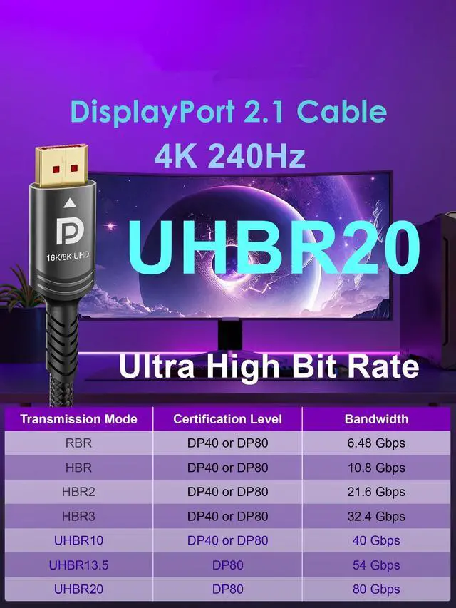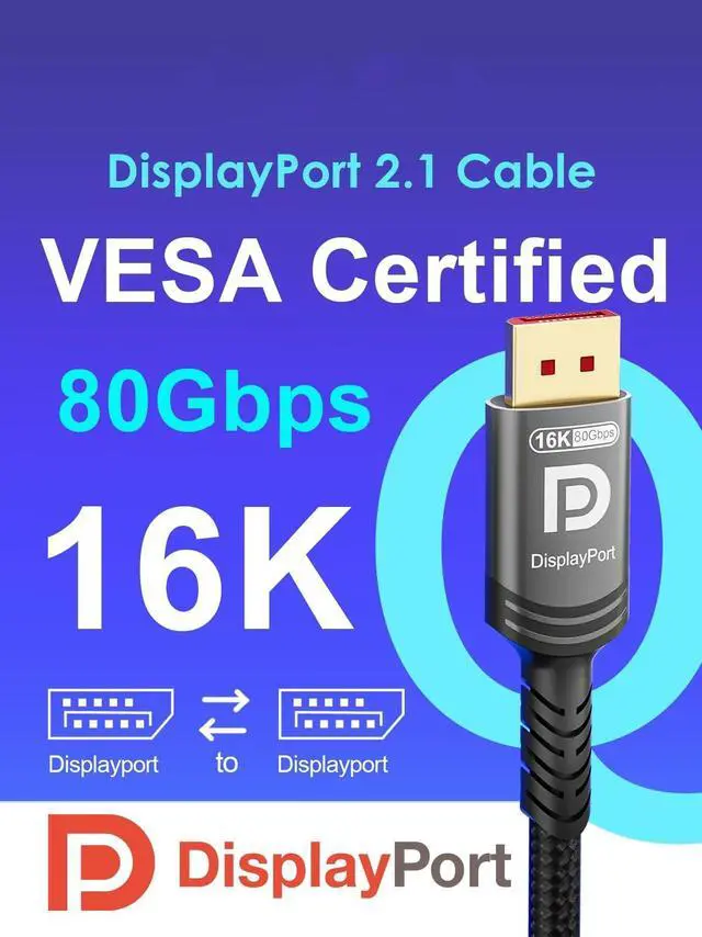 DP 2.1 Cable: DisplayPort 2.1 represents the latest interconnect technology now available to consumers from manufacturers. And like other new versions of DisplayPort, DisplayPort 2.1 is backward compatible with earlier DisplayPort standards. DisplayPort 2.1 was announced in October, 2022. It supersedes DisplayPort 2.0 (published in June, 2019) and defines the new normative requirement and informative guideline for component and system design