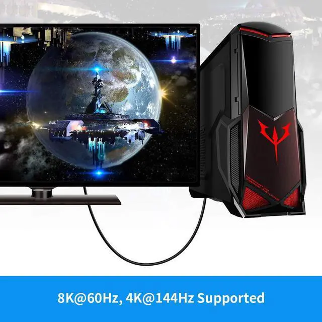 8K/60Hz 4K/144HzThese DisplayPort 1.4 cables support resolutions up to 8K (7680x4320) @ 60Hz. The DisplayPort 1.4 monitor cable provides the essential connection to support the next generation of super ultra-high-definition video.