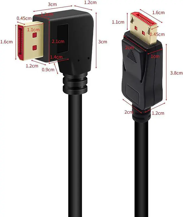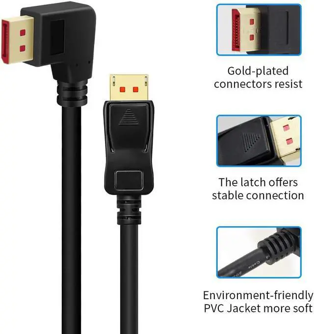 Access to hard-reach DP PortThese 1.8 m/6FT 90 Degree Angled DP 1.4 Adapter Cables with Displayport male plug provides easier access to the Displayport on your PC or monitor, which is ideal for connecting your DisplayPort-enabled laptop or desktop computer to Display like a monitor with DP port.