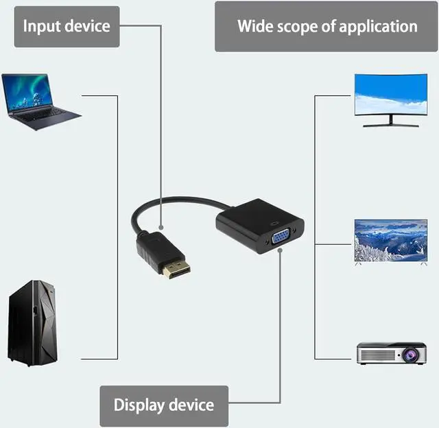 Plug and play: Easy to use no driver or software required. The DisplayPort to VGA adapter connects a computer desktop laptop or other device with a DP port to a monitor projector HDTV or other device with a VGA port.