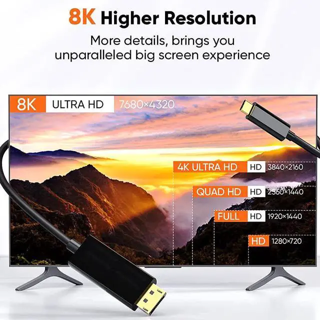 Connect your USB-C devices to high-performance DisplayPort monitors with this USB-C to DisplayPort 1.4 Cable. Supporting 8K@60Hz, 4K@144Hz, and MST daisy-chain capabilities, this premium cable delivers stunning ultra-high-definition video for gaming, professional workflows, and VR applicationsperfect for MacBooks, iPads, Windows laptops, and Thunderbolt-enabled devices.
