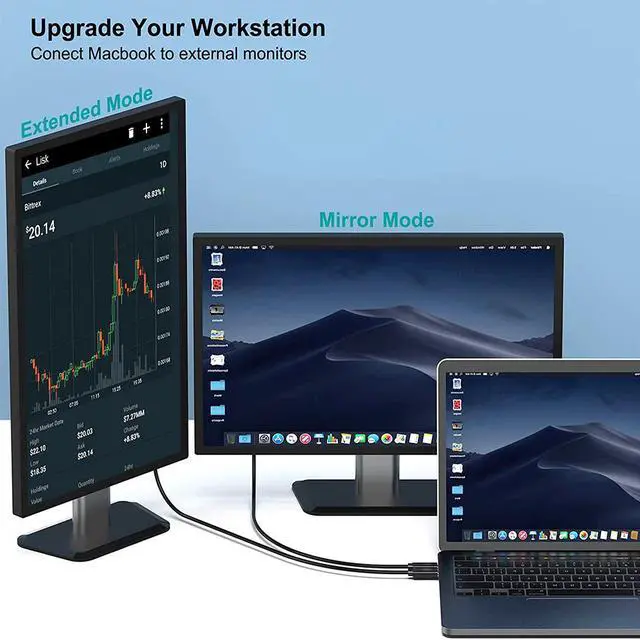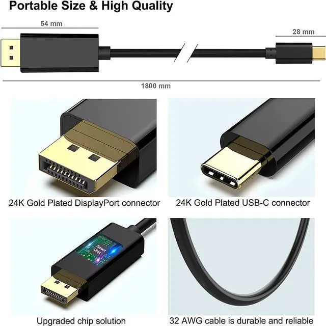 • Thunderbolt 3/4 & USB-C Compatible: Works with Thunderbolt 3/4 ports and USB-C with DisplayPort Alt Mode supportcompatible with MacBook, iPad Pro, Dell XPS, Surface Book, and more.