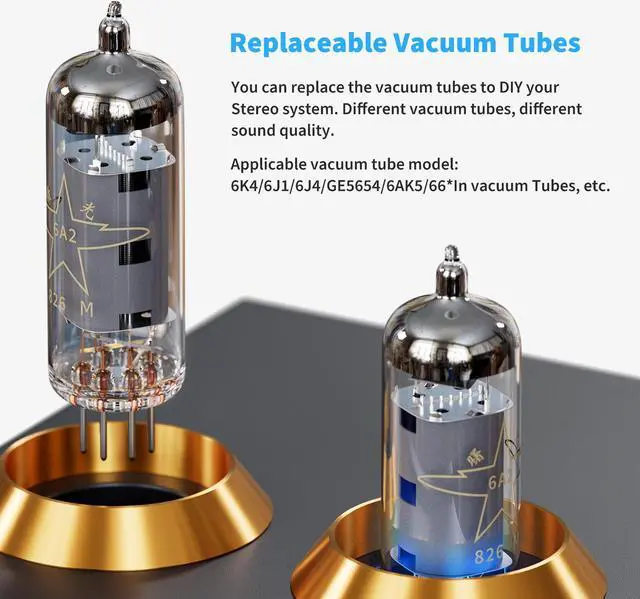 • Applicable Vacuum Tube Model: The compatible vacuum tube models are 6K4, 6J1, 6J4, GE5654, 6AK5, 66, etc. To make changes to your stereo system yourself, simply swap out the vacuum tubes.