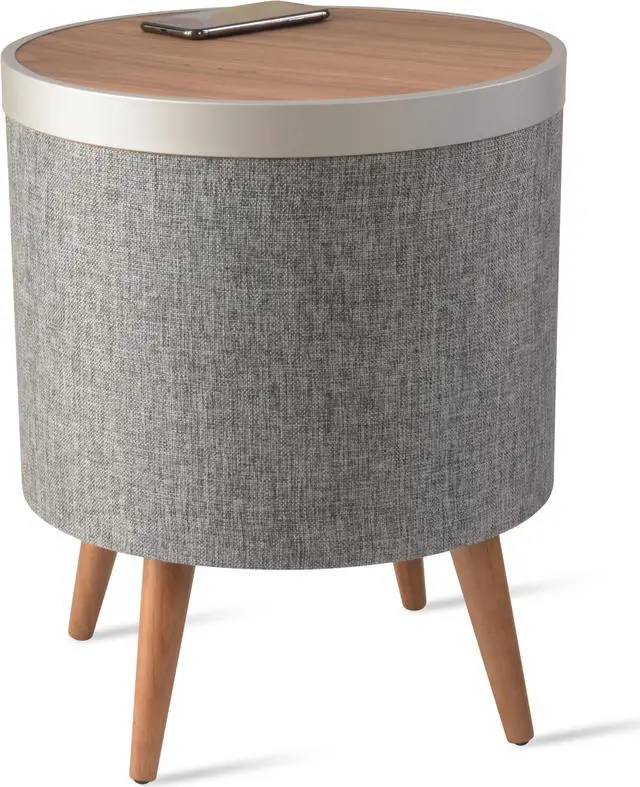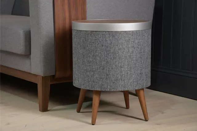 Zain is our stylish, smart, occasional side table with upholstered sides and solid wood legs. Equipped with electronic amenities and loaded with functionality, this sleek table not only holds your cup of coffee, but also doubles as a portable Bluetooth speaker system and charging station. Zain resonates rich and immersive 360-degree sound while also charging all your devices via the wireless charging pad on the tabletop or via the USB charging port on the side. Customize the table height preferences to accommodate your living space with the 2 sets of interchangeable legs included.