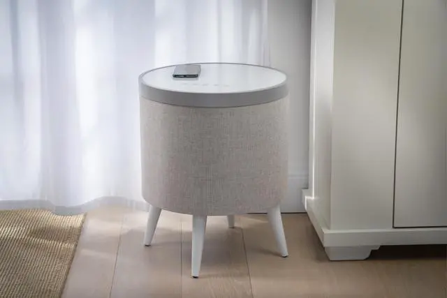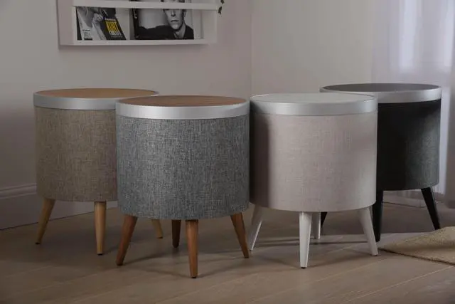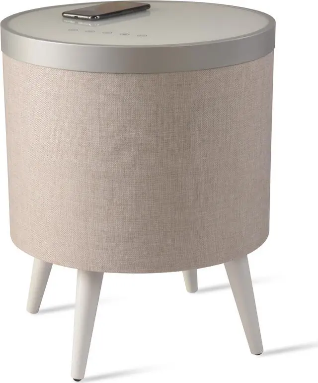 Zain is our stylish, smart, occasional side table with upholstered sides and solid wood legs. Equipped with electronic amenities and loaded with functionality, this sleek table not only holds your cup of coffee, but also doubles as a portable Bluetooth speaker system and charging station. Zain resonates rich and immersive 360-degree sound while also charging all your devices via the wireless charging pad on the tabletop or via the USB charging port on the side. Customize the table height preferences to accommodate your living space with the 2 sets of interchangeable legs included.