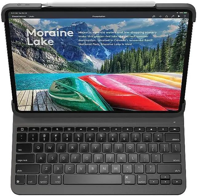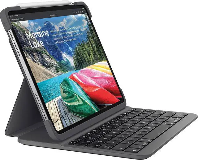 WORK LIKE A PRO Enjoy laptop-like typing on your iPad Pro 11-inch and 12.9 -inch (3rd gen) with Slim Folio Pro. Three distinct use modes ensure you can always work at your highest level no matter where you are - a caf table, desk, or even your lap. This light all-in-one case provides front and back protection for your device and even features a convenient spot to charge and stow your Apple Pencil (2nd gen). THREE USE MODES Slim Folio Pro offers three unique modes to help you accomplish any task more efficiently.