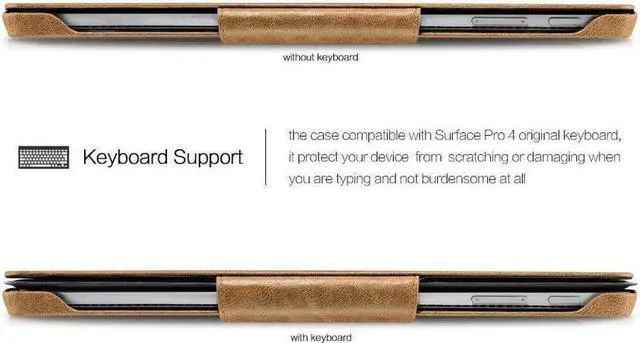 COMPATIBILITY Perfectly designed for 2015 Microsoft Surface Pro 4 and 2017 New Microsoft Surface Pro in 12.3 inch only. The product is the Leather Cover only, not contains the Keyboard.
