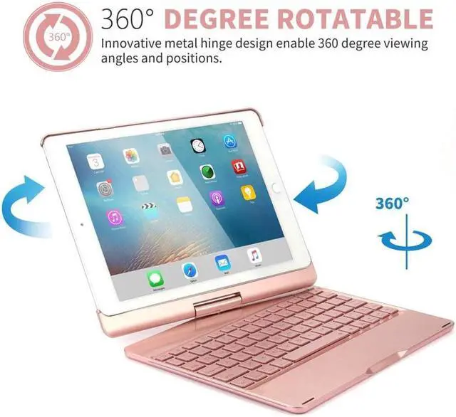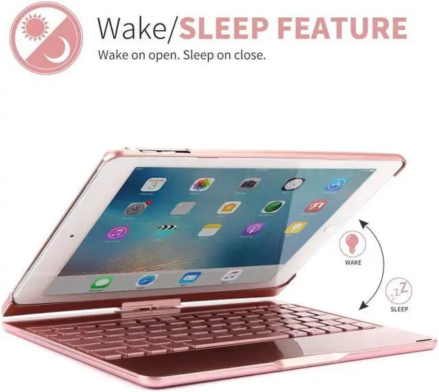 Highlights: Creative Smart Keyboard Case Hard Shell - This high quality apple iPad protective keyboard case cover will turn your iPad into stylish laptop in Seconds. Specifilly designed for 2017 New iPad 9.7 (A1822/A1823), iPad Pro 9.7 (A1673/A1674/A1675), iPad Air 2(A1566/A1567) and iPad Air(A1474/A1475/A1476). Never Worry About Buying Wrong Size Case, Not for other iPad model. 7 Colors Backlit Wireless Bluetooth Keyboard Case - This apple keyboard hard case have 7 colors backlighting options, different brightness control, makes the iPad keyboard works and looks great in dark, provide a different visual enjoyment and comfortable typing experience for you. 360 Degree Rotate & 180 Degree Flip Keyboard Cover - 360 Degree Rotation and Multi-Angle Adjustments to Meet Your Visual Needs. Support 180 Degree Flip, easy to flip the iPad over, Convenient to your life. Full Protection & Precise Cutouts - It provides Full-Body Protection to Keep Your iPad Free from Scratches, While Providing Full Access to All Ports. With the Auto sleep/ wake function, it can help your ipad to save more power. Package & Warranty -