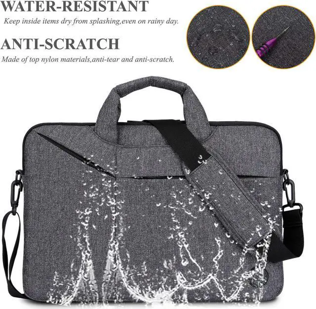 Water Resistant & Durable -- made of high quality anti-tear water-resistant nylon,keeping inside items dry against from splashing,even on rainy day.Excellent Sewing makes this laptop bag more durable,lasting much longer.
