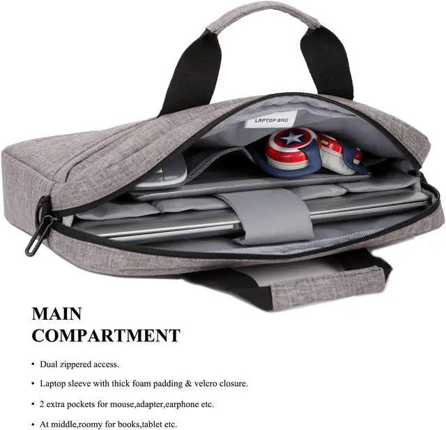 -Dual zippered closure enable easy and quick access to your inside laptop or accessories. -Features a removable adjustable anti-slip padded shoulder strap, and dual sturdy handles to carry in comfor for a long time.