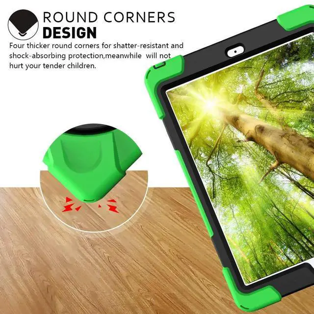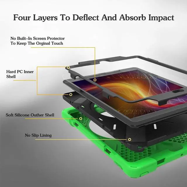 Equipped with flexible rubber-like silicone outer frame and four thicker round corners. It keeps your iPad secure and protect it from bumps, drops, and spills. Shatter- resistance and shock-proof design will greatly enhance your sense of safety.