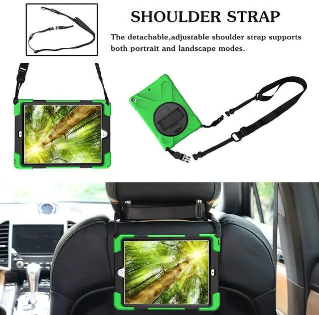 The shoulder belt is adjustable and removable. Your tablet can be slung diagonally or slung over one shoulder, even hung in front of your backseat. Let your backseat passengers enjoy convenient tablet viewing from the back of your car's headrest posts.