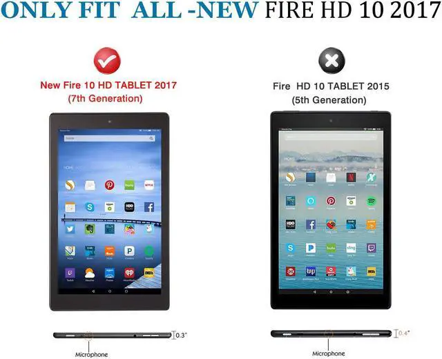 Notes: Fits Amazon Fire HD 10 Tablet (7th Generation, 2017 Release) ONLY. NOT FIT Fire HD 10 (5th Generation, 2015 Release) and other fire tablets.