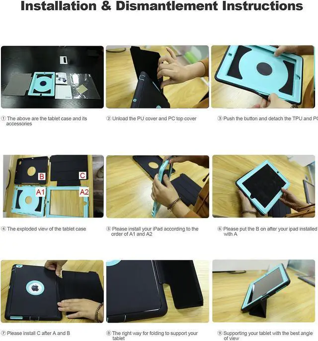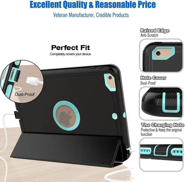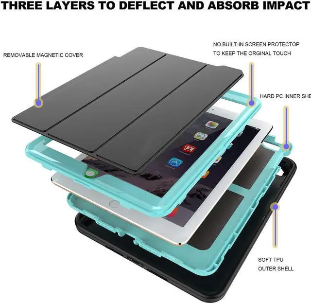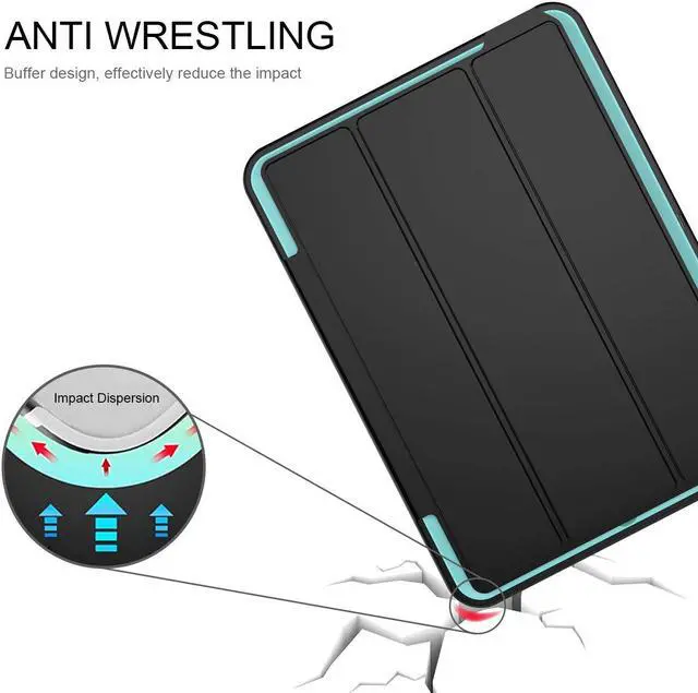 MATERIAL: The New iPad case made from high-grade thermoplastic polyurethane and PU leather hard PC inner shell & soft TPU outer shell & the lint lining protecting the display without scratch & dustproof Auto Sleep/Wake convenient cover.