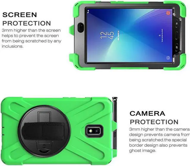 Heavy Duty Shockproof Rugged Case with Pen Holder For Samsung Galaxy Tab Active2 8.0 Inch Tablet Buyer Please BE AWARE: NOT Provide A Screen Protector and S Pen Strong from the inside out, Samsung Galaxy Tab Active2 is a rugged tablet. Based on this, we design the Heavy Duty Three Layer Rugged Shockproof Protective Case for Samsung Galaxy Tab Active2 8.0 Inch 2017 released Tablet (SM-T390/T395/T397). This Tab Active2 8.0 Inch tablet case can Provide strongest protection, Add multifunctional usage. It's ideal for industries like asset management, retail, transportation, manufacturing, field service and public safety. sage.