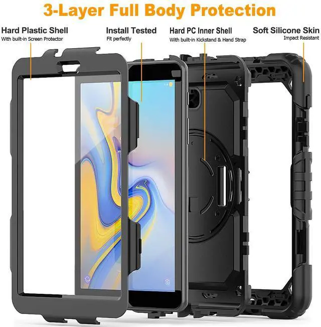Body Protection: Composed of built-in screen protector, dual-layer premium hard plastic shells[Top PC Frame & Inner Hard PC] and flexible outer silicone, this Samsung Galaxy Tab A 8.0 case can provide your tablet with all round protection against accidental shock, drop and scratch.