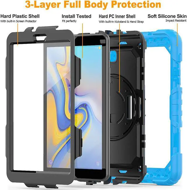 Three Layer Full Body Protection: Composed of built-in screen protector, dual-layer premium hard plastic shells[Top PC Frame & Inner Hard PC] and flexible outer silicone, this Samsung Galaxy Tab A 8.0 case can provide your tablet with all round protection against accidental shock, drop and scratch.