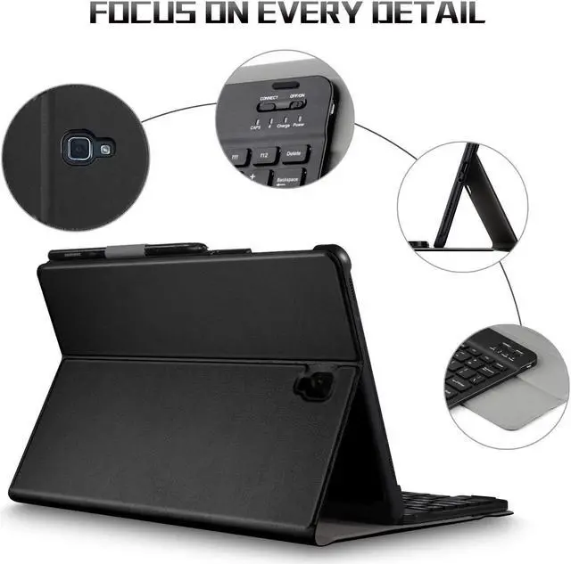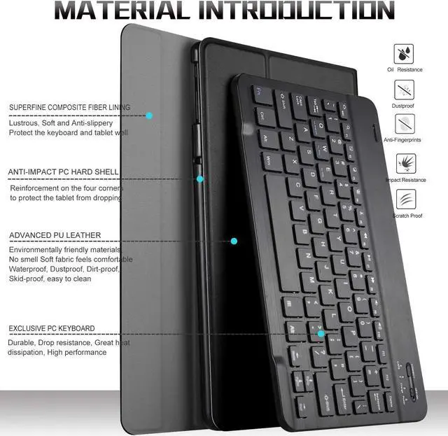 More Features: Supports Multiple Viewing Angles Provides the most comfortable position for watching videos Wireless Keyboard Magnetically Integrated Case works with or without detachable keyboard Thiner & Lighter 10 mm thickness, 1 lb net weight S Pen Holder Designed with a smart holder for stylus Long Battery Life Up to 90 standby day, 90 hrs for working Magnet Closure Automatically wake your device or put it into sleep Portable Carrying The mini laptop style make you looks like an elite any where. High Quality PU