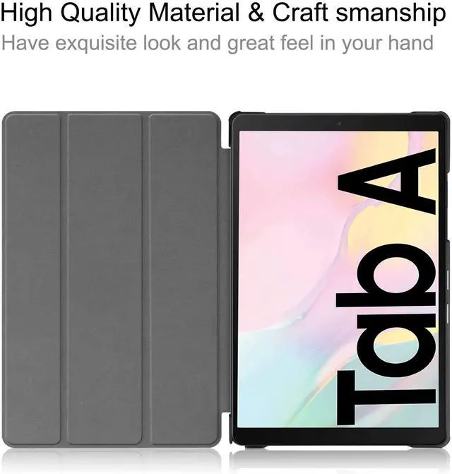 Features: Compatibility -- ONLY designed for Samsung Galaxy Tab A7 10.5 inch 2020 (Model: SM-T500/T505/T507). Pls check your tablet model number before purchase. Tri-fold Design -- Made from PU and hard PC back. Slim/light design. Synthetic exterior and smooth interior provide comfortable texture and prevent scratches and dropping. 360 Degree Protoction -- Compact design won’t add any extra bulk to your tablet. And protect tablet from scratches, dirt and non-slip infringement, has better shock absorption and heat dissipation. Auto Sleep/Wake -- Build in magnets ensure the auto sleep/wake function engages quickly every time. It helps extend your iPad’s battery life. Multiple Angles Viewing -- Special design create a stable viewing stand for your tablet. Two Angles are provided for satisfying your viewing and typing needs. Avoid any joint pain, and free your hands for other entertainments.