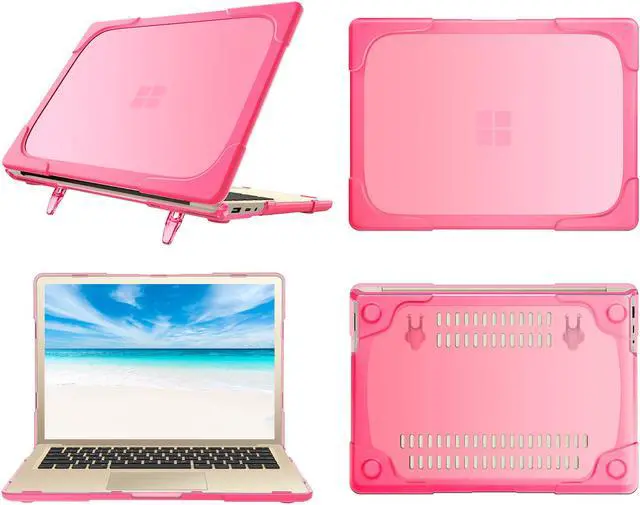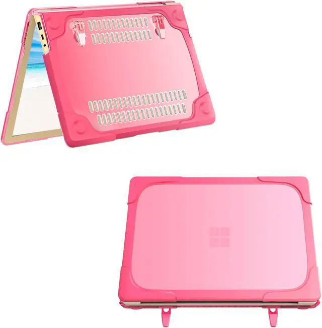 Features: Shockproof protective case for Microsoft Surface Laptop 3 15 inch Model 1873 Heavy duty armor shell with carefully engineered shock-absorbent wraparound bumper, provides supreme protection against accidental scuffs, drops, falls, scratches and other damages No cut out design, Apple logo shines through the case; Built-in foldable stand provides an ergonomic typing angle and a better visual experience, helping to relieve your neck strain Fully vented for safe heat disbursement; Easy access to all ports and features, you can plug your charger, cable or headset without removing the case
