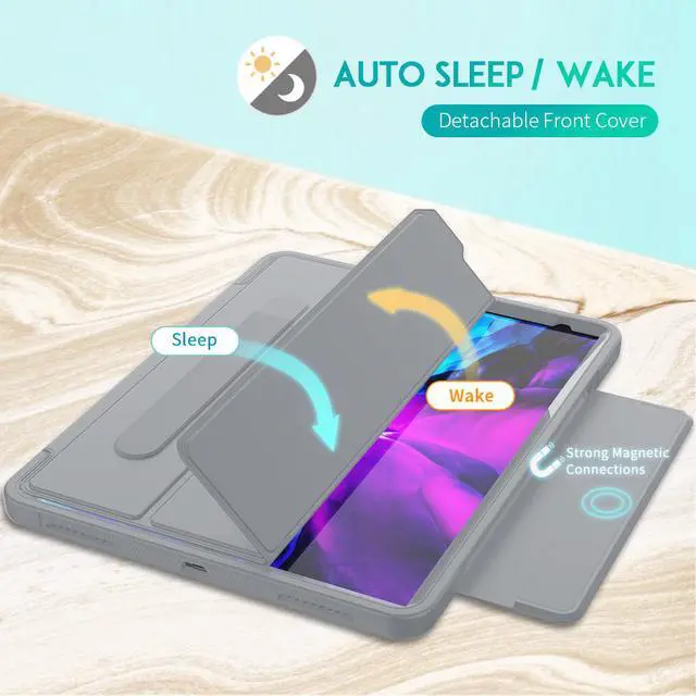 Auto Sleep/Wake]: The magnetic smart cover for iPad Pro 12.9 2020 2018 supports automatic sleep/wake function with easily snap on and off the case and helps extend your iPad battery life.