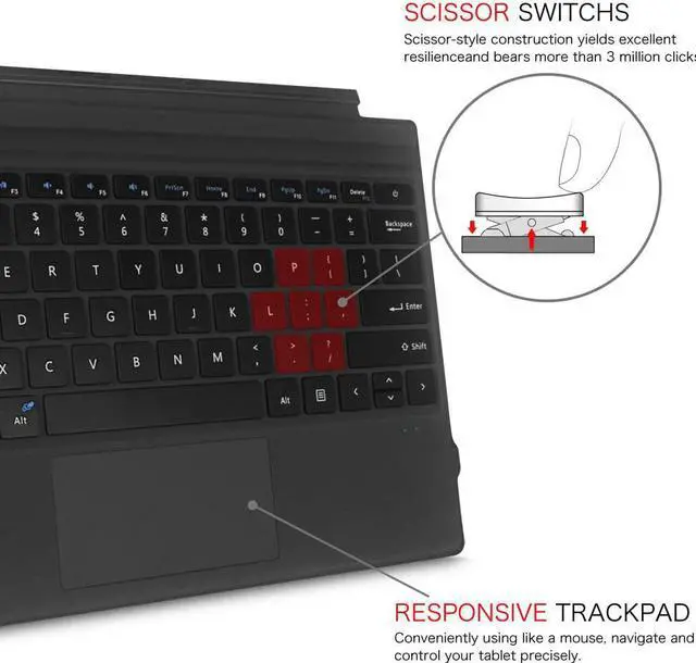 Exclusive design for New Microsoft Surface Pro 7 Plus (2021) / Surface Pro 7 (2019) / Surface Pro 6 (2018) / Surface Pro 5th Gen (2017) / Surface Pro 4 / Surface Pro 3 12.3 inch tablet, with slightly spread out keys for a more familiar and efficient typing experience that feels like a traditional laptop.