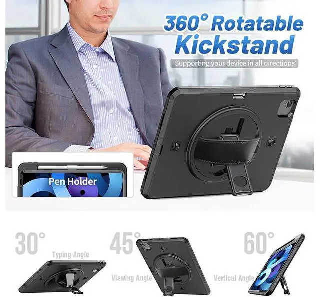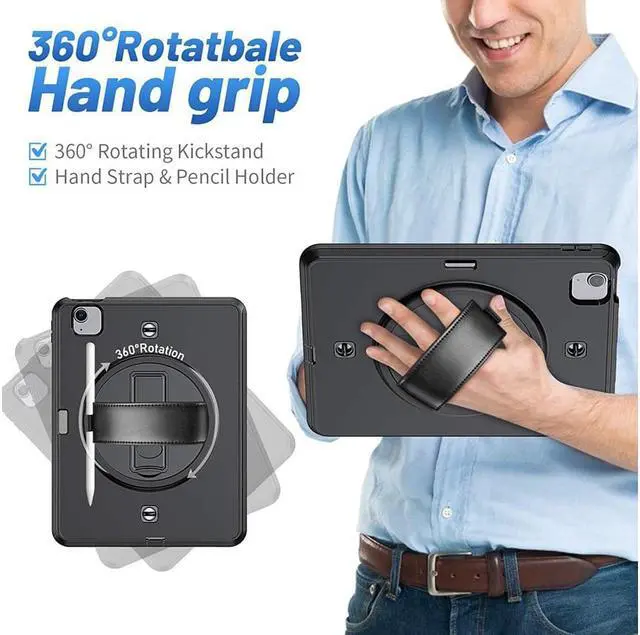 360° rotatable hand strap helps you hold or use your tablet easily and comfortably, avoiding falling due to skidding.